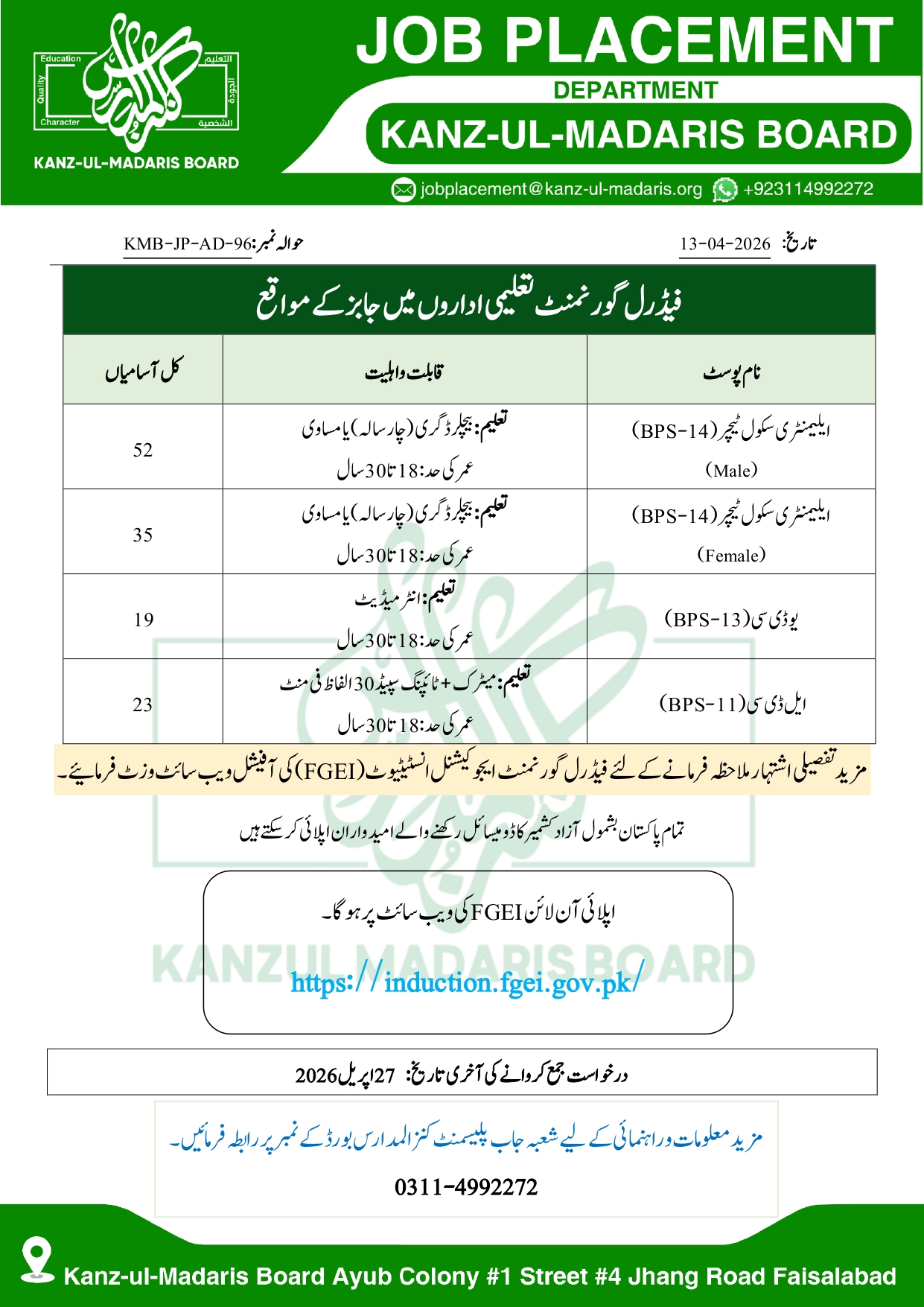 FGEI Jobs (Elementary School Teacher)