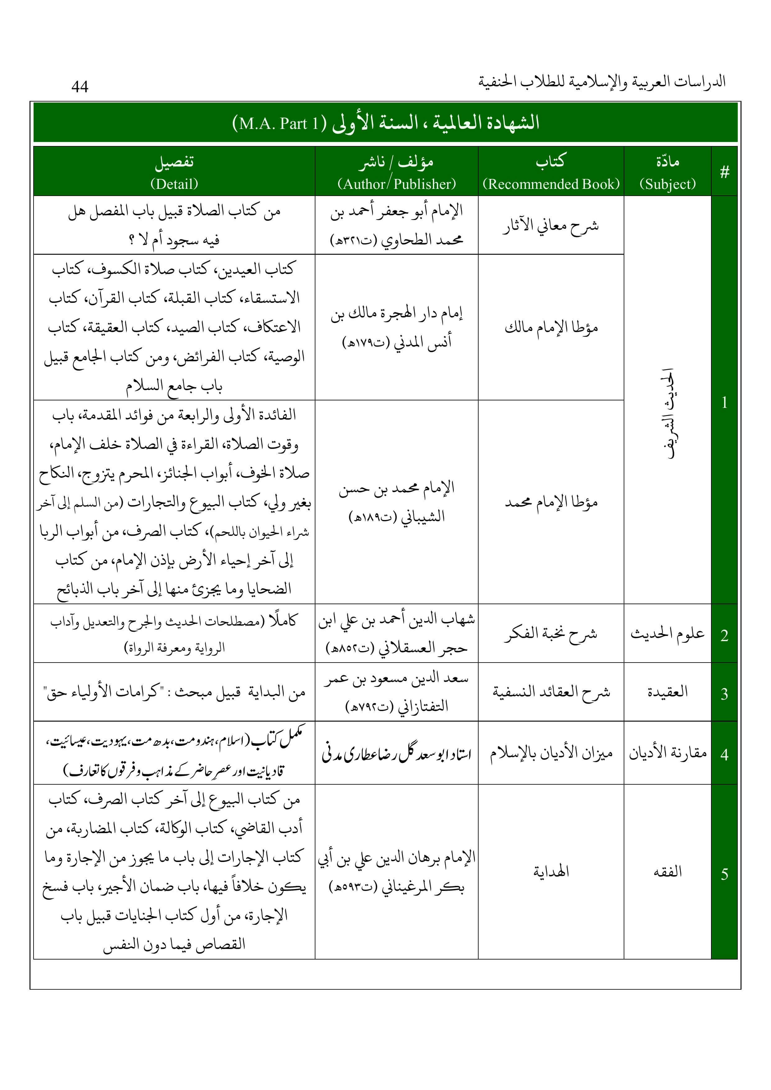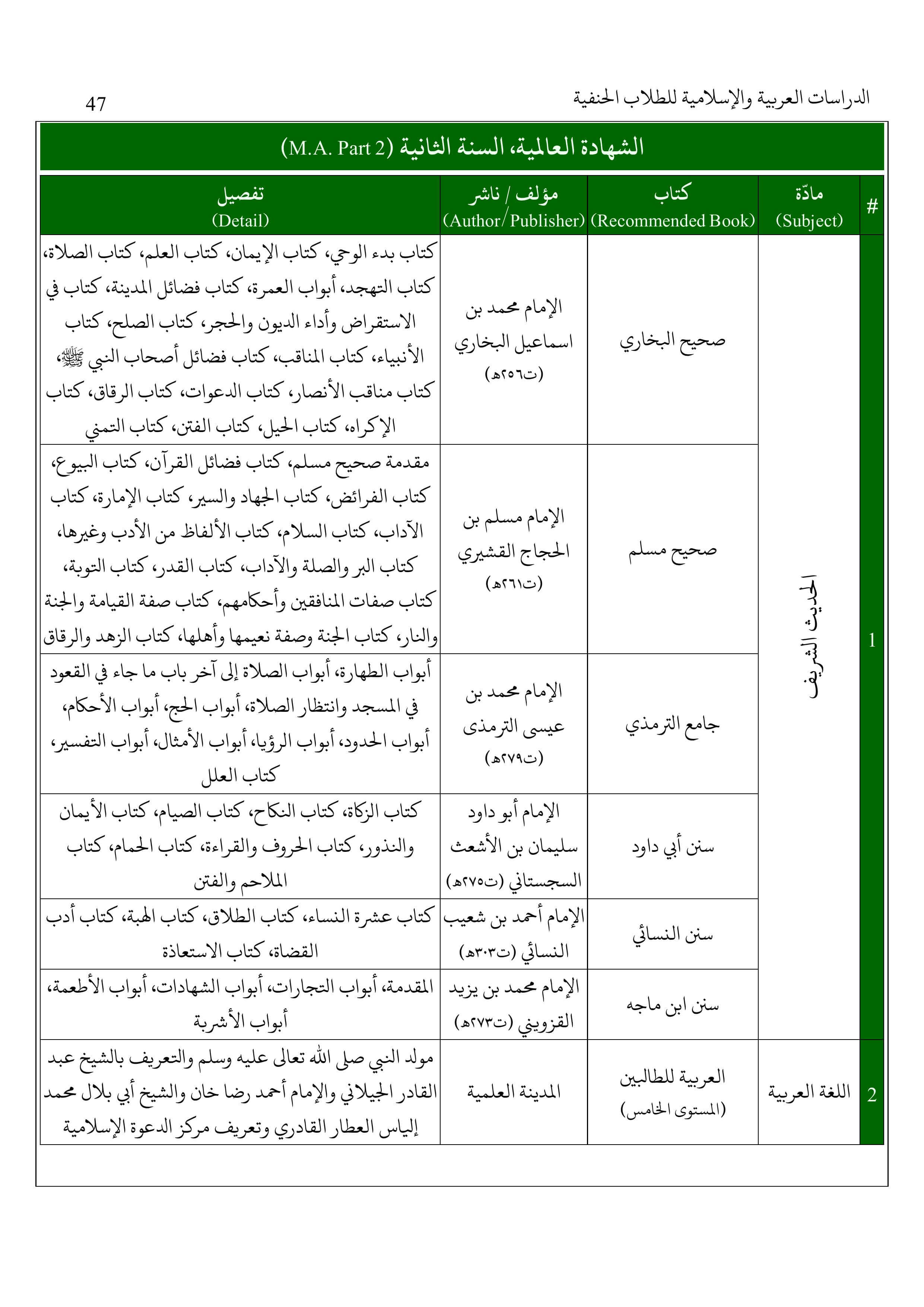 عالمیہ اول و دوم(ایم اے) بوائز