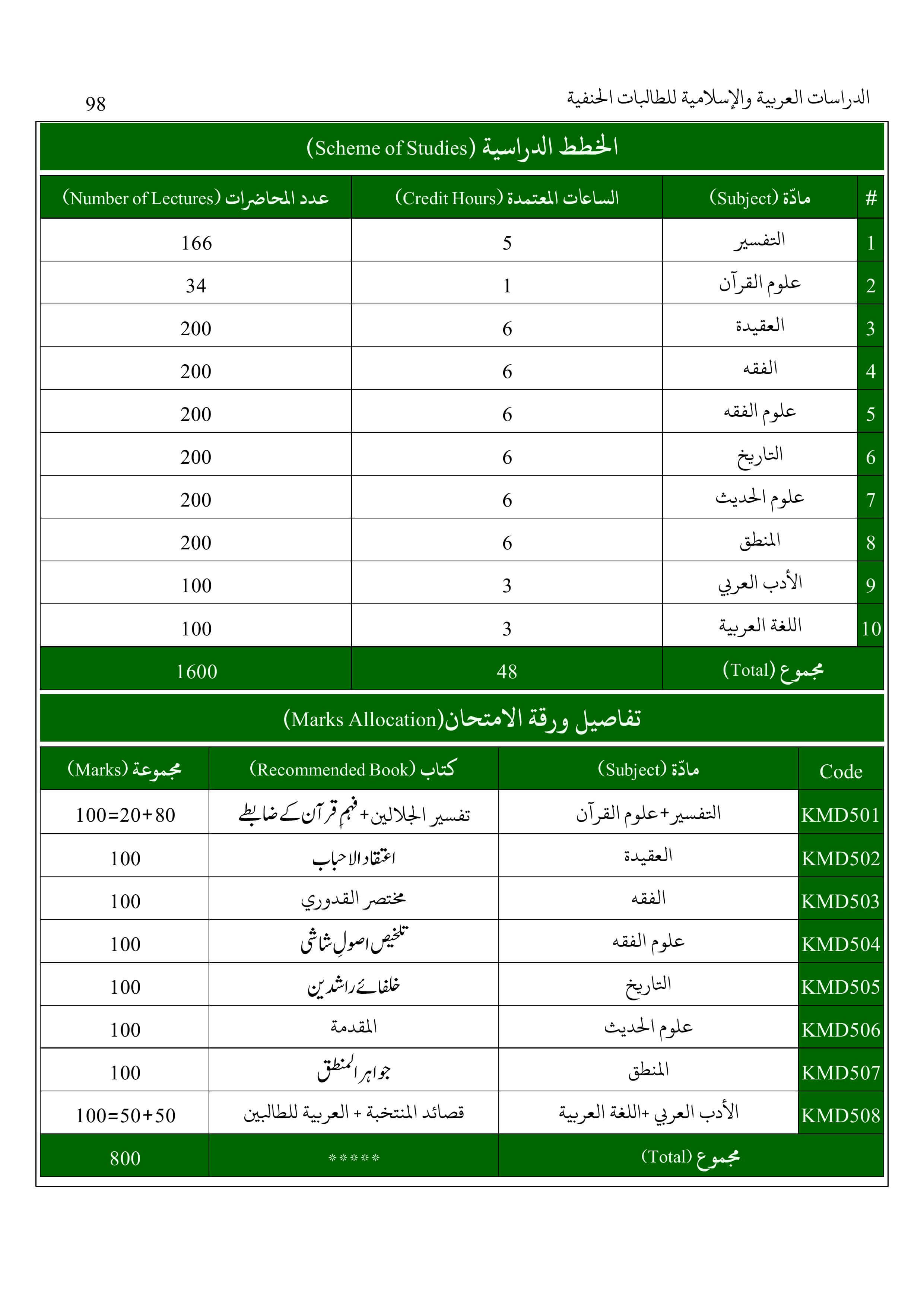 عالمیہ اول و دوم(ایم اے) بوائز