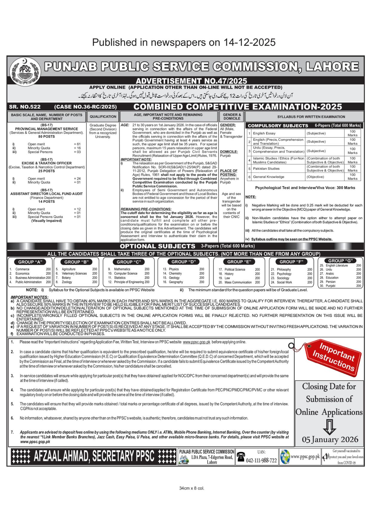 COMBINED COMPETITIVE EXAMINATION-2025 (PPSC)