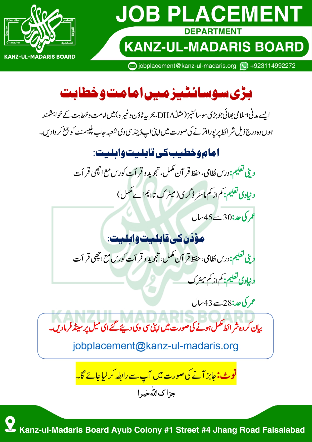 SUBMIT YOUR CV FOR IMAMAT & KHITABAT